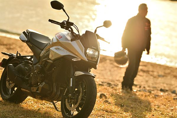 粟栖:的確是不適合長途旅遊的車款,並沒有考量到行李的積載性能,但是在假日騎個2~300公里也不是什麼太大的問題,就像中島先生所說的,只要依照自己的喜好和用途調整的話,就會更有樂趣。常常以休旅騎乘為主的我來說,會想要把龍頭位置調高,並且更靠近自己一點,讓騎乘姿勢更加直立,然後長途旅遊時加裝軟式的馬鞍包增加行李空間,這樣就能大幅提升舒適度了。但是可能會打破原本的設計,畢竟KATANA 最大的魅力就是外觀,硬要調整成休旅款式好像有點本末倒置。