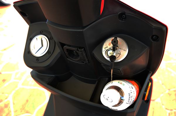 動感外型搭配動力十足的引擎效能,就各層面來說都俱備了最佳的車輛優異條件,實用性自然也有水準以上的表現,超大前置物空間採用了深底設計,大幅增加物品置放安全與穩定度,放入一般700 ㏄手搖飲料杯根本不是問題,加上可折式置物掛勾的裝置,便利商店購物袋也可掛放於此,有效解決女性騎士需要極大置物空間使用問題,搭配椅墊下27公升超大置物空間,一般上班族女性慣用的隨身包也可輕鬆放入,妥善收納重要物品降低物品掉落遺失的風險。