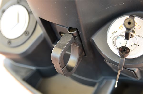 有別於整合鑰匙控制開關椅墊,另外獨立的椅墊鎖頭也可開啟椅墊,減少電門鎖頭耗損