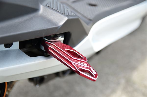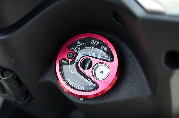 六代Fighter 150的推出,不僅在動力上有著很大的進步,細節質感方面也有所提升,原廠在許多地方都做了跟以往不同的設計,改版的彩晶儀錶相較於之前的版本更具質感與辨識度,鈦銀烤漆的傳動外蓋第一眼看還以為是改裝品,諸多細節都讓人感受到六代Fighter的高規格定位。雖然如此愛車的車友還是覺得好還要再更好,因此千裕車業也針對細節部品進行開發,許多人也開始著重於細節的質感升級,就是要改出專屬自己的風格,這台Fighter在許多地方都選擇了CNC鋁合金的改裝部品,在陽極電鍍的處理下,紅色更具金屬質感,整台白色的車身再加上細節CNC陽極紅部品的點綴,看起來更有主題性。