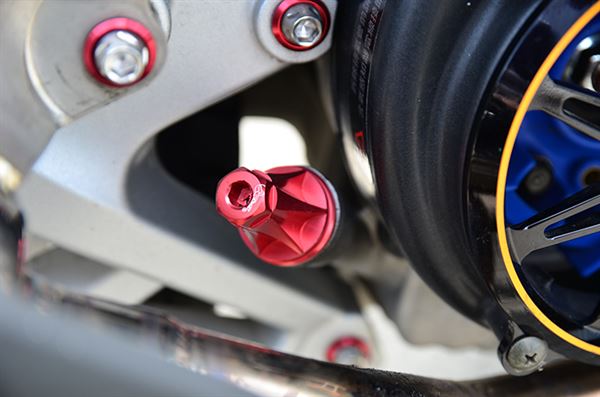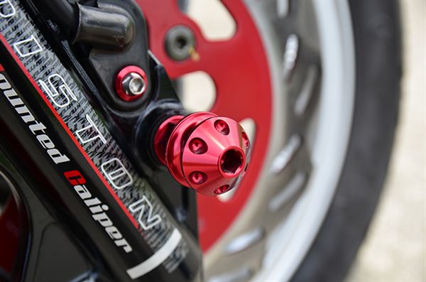 前輪換上K&S 白鐵前輪軸心,延伸出來的是精緻CNC點狀型螺絲
