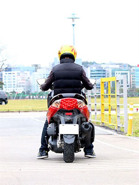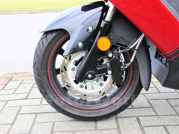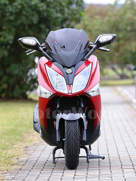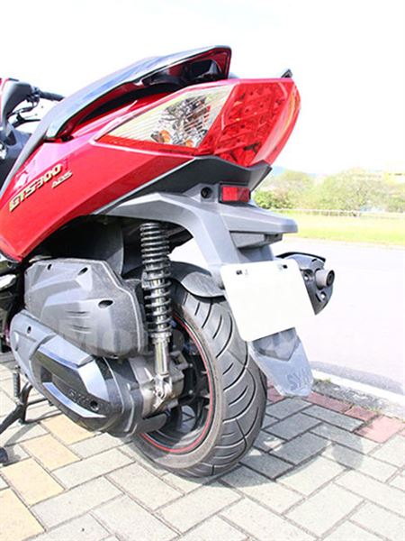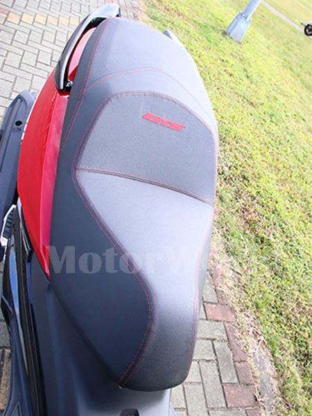 在筆者初次接觸到以純粹享受騎乘質感為賣點的SYM GTS 300i ABS SPORT版之時,不禁好奇比起先前的設計有何不同?初入眼簾時車型外觀有著相當顯眼的差別,檔風鏡從原本的長風鏡縮短不少,且原本的透明配色改為純黑配色,與熱血的亮紅車身呼應顯得非常戰鬥。大燈與霧燈的配置並未做任何更動,前座騎乘並無太多的差異,後視鏡的位置依然設定在大燈左右上頂角,但鏡面面積廣大,提供騎乘者最佳的後視效能。車把高度延續了輕鬆易操控的優點,加上前懸吊路面處理細膩精準,不管是都會街區或是山道走行,都能立刻跟隨騎士的期望輕易轉動前輪。對於剛入手或是初入門騎乘者來說或許會有所顧慮,但Sport版給予筆者最為驚豔的便是它的動態反應,延續先前的輕鬆騎乘優勢,更灌注了運動跑車應有的騎乘樂趣,使得整體車輛穩定性更加傑出優異!前腳踏空間維持中央凸起包納車架設計,操控上影響不大,加油口也還是位居中央踏板區。儀錶設定為四環指針錶搭配部份液晶及燈號警示,由左至右分別為油量顯示、公/英制車速錶、引擎轉速、工作水溫;液晶顯示資訊有時間、行駛里程及側架熄火警告圖號,簡而易懂的讀取組合,使得騎乘者更能輕鬆判讀所有資訊!