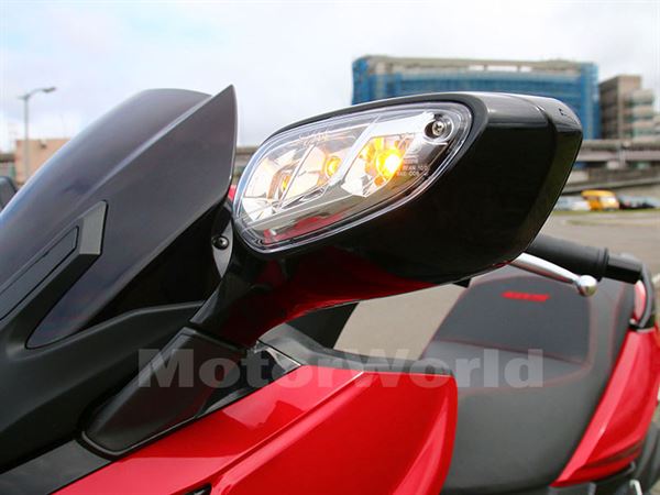 前方向燈配置在左右後視鏡背面,與汽車級設計手法相同,具備高規格質感