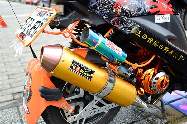 全金色的板井排氣管,與其上的洩壓管充滿日式誇大的特色