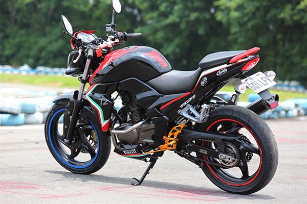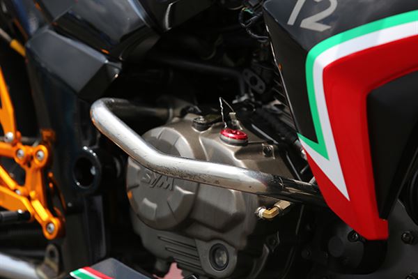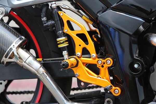 由中和武田車業一手打造的這輛T1,除了車身上簡潔又有特色的烤漆外,硬體性能方面也有不同於一般T1的表現,首先來看看制動方面,換上了武田加大碟盤、Brembo卡鉗,並搭配直推總泵讓整個煞車更為完整、細膩且確實。坐姿也因應需求做了調整,WRRP腳踏後移以及較低的刀把,凸顯了騎士三角,在騎乘時可以更為舒適。性能方面也精心調整搭配武田卡夢鯉魚嘴排氣管,讓引擎出力可以隨時在最好的狀態,車重較重的車輛其輪胎的抓地力更顯得重要,因此前後輪都配上了普利司通的BT39,讓安全性與穩定性更加提升,只要行動起來就知道這刺客的厲害!