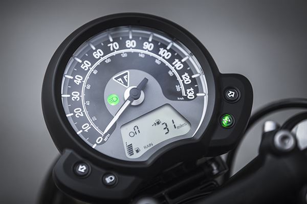 高低可調的單眼儀表板,目前的引擎模式會以英文顯示在液晶部分