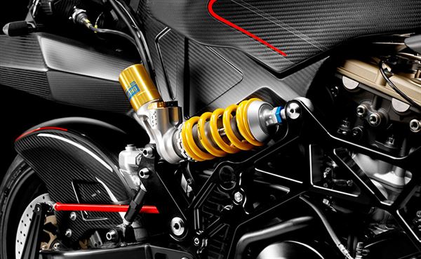 前後懸吊皆採由ohlins提供的避震器,對於此一猛獸的用料毫不馬虎,也看得出VYRUS的造車理念是盡力做到獨特及最好