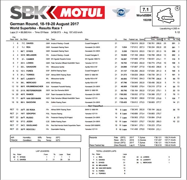 WSBK德國戰成績-RACE1