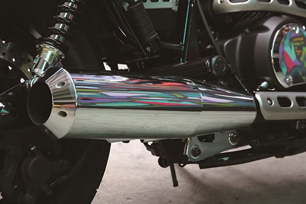 整台車最吸引人的地方除了將原廠線條加以精緻化,車尾部的槍套型馬鞍袋更是讓人印象深刻,為了避免與避震器的氮氣瓶有摩擦,Revo特別構思這樣獨特的後袋造型,大大增添了美式風格。