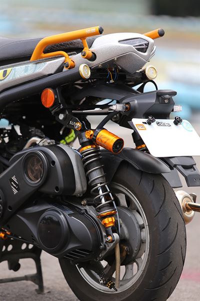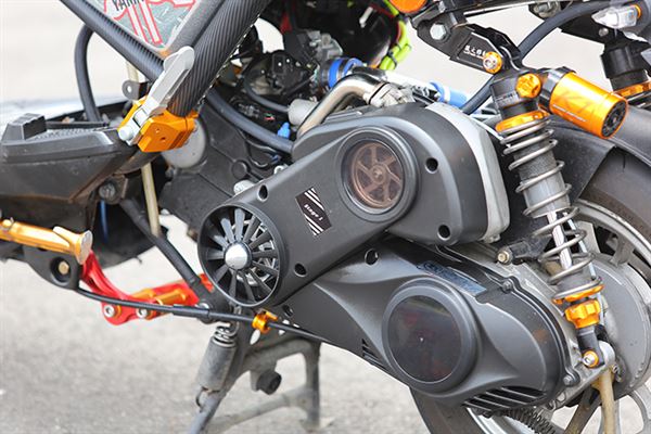 熱血年輕人們不停地追求更高水平的速度享受,因此國內開始出現開發「機械增壓」的廠商。「機械增壓」有什麼效用?簡單的來說就是將經過增壓器壓縮後的濃縮空氣打入節流閥中增強燃燒效果,藉此來提升爆炸能量。在同樣CC數的情況下,安裝了增壓系統的這輛BWS更能確實有效利用缸內容積,榨出更高馬力以及扭力。為了適應這強化過的動力輸出,安全、穩定性方面就必須改善了,FRANDO幅射卡鉗配上加大碟盤,可讓安全得到更好的保證,而K1可調式後避震以及強化吊架則提供了不少穩定性。只有如此配備才能使這輛增壓怪獸自在地奔馳於道路上!