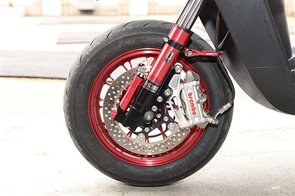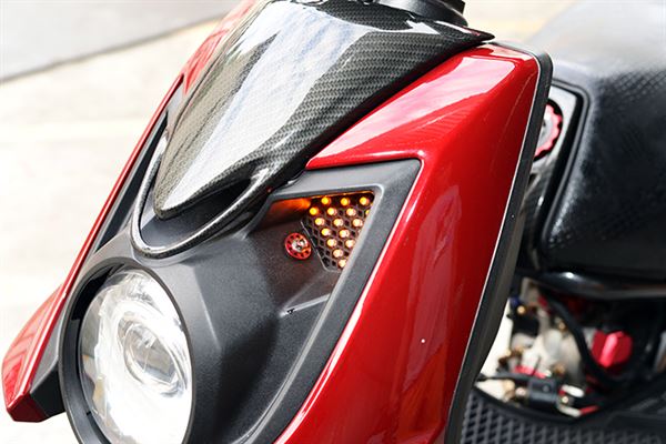 中部地區BW’S玩家族群眾多,從越野滑胎風、低調風到渦輪動力爆改都大有人在,不過這次要替大家介紹的是非常奢華風格的改裝方式。此車是小編在一中街頭直擊攔截採訪的,車主除了很和藹友善之餘也對改車風格非常有想法。車子從配色到改裝精品的選擇都相當講究,輪框方面,選用了輕量化與操控性極佳的鯊魚鍛造輪框,讓車子本體的戰鬥感與質感都大大的昇級。制動部分則是選用了BREMBO對四卡鉗與狂熱者碟盤,除了安全性十足外也有著頂級的氣息。細部修飾部分車主也是絲毫不馬虎,除了卡夢鬼面罩與卡夢前土除的安裝,還幫愛車更換了全車的POSH白鐵螺絲,讓愛車不論是近看還是遠望都是一等一的頂級藝術品。