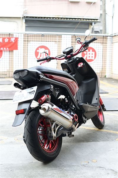 中部地區BW’S玩家族群眾多,從越野滑胎風、低調風到渦輪動力爆改都大有人在,不過這次要替大家介紹的是非常奢華風格的改裝方式。此車是小編在一中街頭直擊攔截採訪的,車主除了很和藹友善之餘也對改車風格非常有想法。車子從配色到改裝精品的選擇都相當講究,輪框方面,選用了輕量化與操控性極佳的鯊魚鍛造輪框,讓車子本體的戰鬥感與質感都大大的昇級。制動部分則是選用了BREMBO對四卡鉗與狂熱者碟盤,除了安全性十足外也有著頂級的氣息。細部修飾部分車主也是絲毫不馬虎,除了卡夢鬼面罩與卡夢前土除的安裝,還幫愛車更換了全車的POSH白鐵螺絲,讓愛車不論是近看還是遠望都是一等一的頂級藝術品。