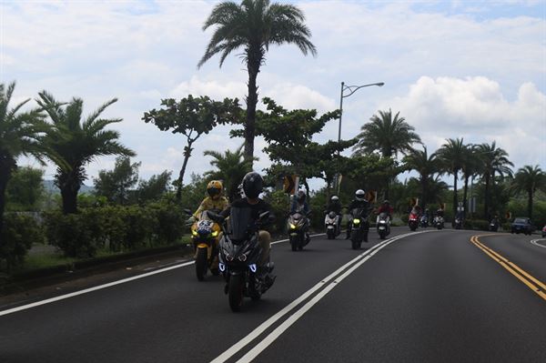 眾多YAMAHA車主行駛在屏鵝公路上,景象好不壯觀