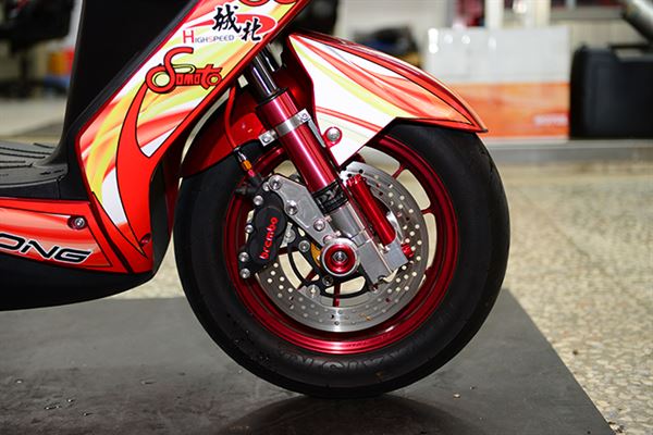 為了讓新勁戰三代進化成後碟煞版本,還特地改裝了SPEED1後搖臂