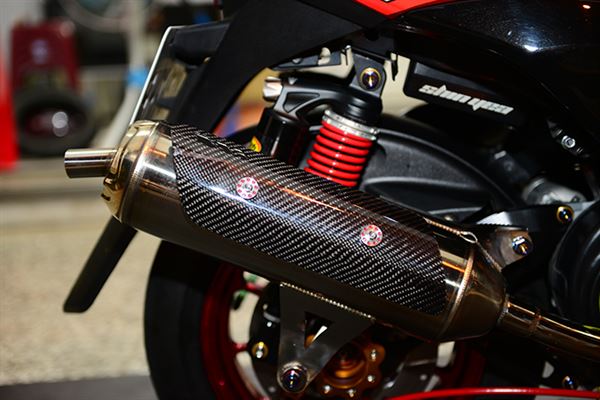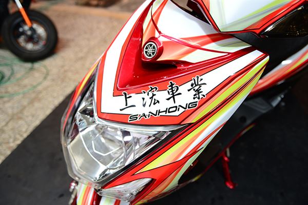 在2014年已經準備好要參與TSR賽事的上浤車業,老闆本身除了比賽車設定能力一流,對於一般道路街車的改裝可是一點也不馬虎。鮮紅火焰的車身包覆,在道路上已經搶得路人的注目,細看改裝部品更是有驚人的發現,前後輪框分別採用大廠商「鯊魚工廠」與「RPM」的鍛造輪框,質感跟輕量化都有大幅得提昇。後避震器部分更是採用英國品牌K-Tech,外加上許多的鈦合金、白鐵鍍鈦螺絲點綴,讓整車有了更棒的價值感。