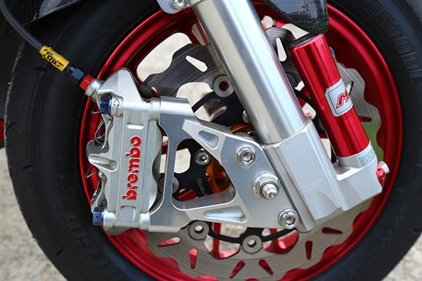制動部份一次攻頂,改裝Brembo的輻射對四卡鉗