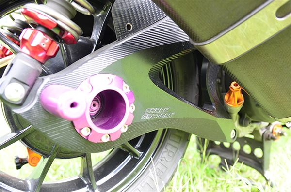 從義式的彩繪風格外型可看出,這台勁戰花了車主很多心思,再加上寬體後移的車體傳達出不同的視覺效果,改裝部品方面Beringer輻射卡鉗搭配毛毛蟲金屬油管不僅加強煞車效果也提升感官質感,接著將目光往後移可以看到鯊魚鍛造框配著同品牌排骨、K1 H/L的後避震,動力也靠金鋒63缸及美國吉村管的加持,令人印象深刻。
