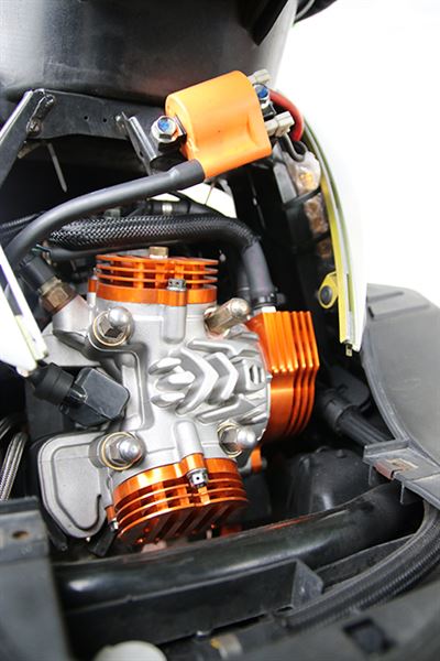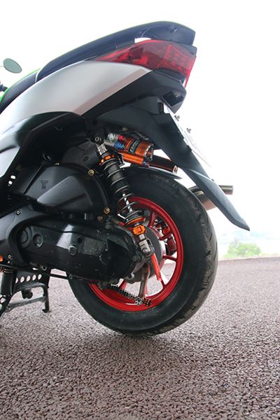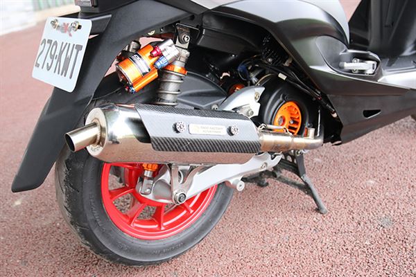CODO 66缸1200條的引擎缸體套件,搭配Keihin 40節流閥控制供油混合比,讓引擎在基礎動力效能輸出上,產生飽滿紮實的動力輸出曲線,加上aRacer供油系統嚴密的監控管理與設定技術,車輛性能當然會更為直接快速輸出,但是光有動力輸出表現還不足以滿足車主用車需求,G Stone 14×38輕量齒輪、唭哩岸車業傳動組對傳動系統的調整,讓引擎出力更飽滿順暢!
