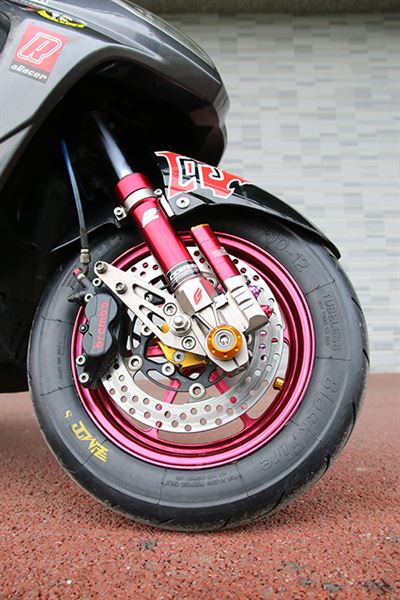 aRacer全取代電腦、I Mode監控模組、Nobe鍛造框、前TDC 2000 Pro避震器、後GJMS GP6 RT/HL避震器、銳澤雙出口管、JVT 66缸420套件組、FAR浮動碟