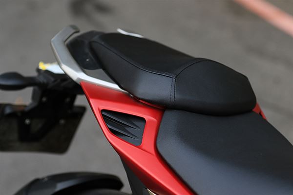 車側則是讓整流罩迎合著前輪的弧度做出協調的前視覺,中央黑色版件與油箱側邊互相搭配,減少了車測視覺的厚重感,下方尖型下罩其實不是與整流罩一體,而是單獨的版件,銜接處的線條其實嚴深來看是順著車尾的上揚線條連貫,帶出車尾朝上的收尾。油箱的肌肉線條立體感十足,更是擁有14L的大容量來增加車輛的騎乘距離,在車尾前後做的銜接處側邊也做有類似進氣孔的飾版,較為少見的是或許是為了東南亞的使用習慣,後輪左側有設計了側廂檔版,並也延伸到後輪成為第二組檔泥板。