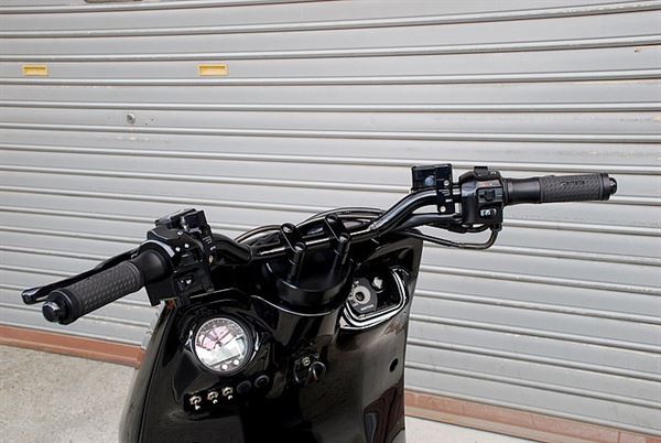 換上平把的龍頭,將儀表板和按鈕埋入下方的車架內