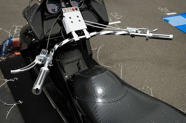 本車最大的特色就是前後都換上極寬的鋼絲框,在視覺上帶來極大的衝擊。獨特的外殼設計也吸引了不少民眾的目光