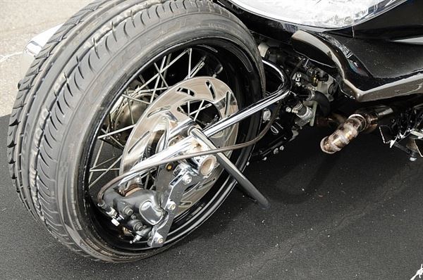 將懸吊系統換成多連桿單槍,直接移植HARLEY的鋼絲框,不論是巧思或是手法都相當具有水準