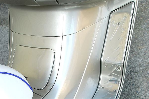 金屬腳踏飾板和車身的顏色交相呼應,也是速克達才有的改裝位置