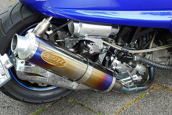 換上高性能的排氣管,藍色的燒鈦痕跡和車身搭配起來相得益彰