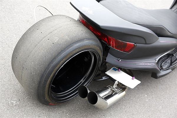 超大的後輪讓人從背後看的時候不禁懷疑起這是否為速克達,超長的軸距也有令人驚艷第一印象
