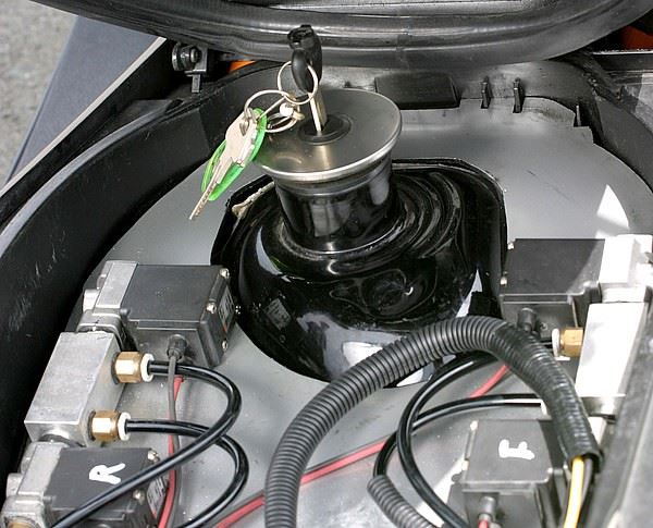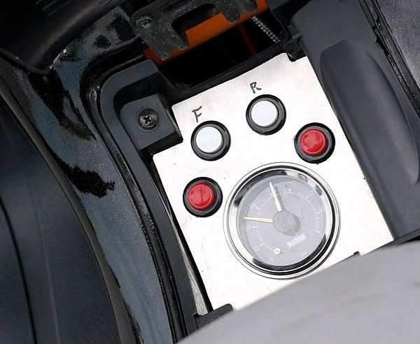 將油箱轉移到其他地方,原本油箱的地方換成氣壓避震的按鈕和氣壓計