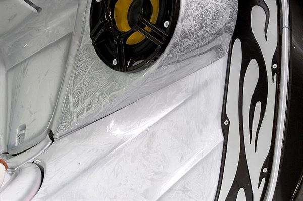 細看後可以發現白色的車身中有的細膩的圖騰