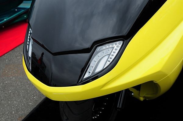 渾圓的外型搭配黃色的顯眼配色,高角度的風鏡點出一種近未來感
