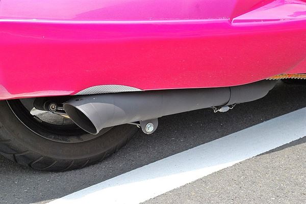 採用彈簧避震,而非時下流行的氣壓避震來降低車高,搭配粉紫色的塗裝,算是相當極具特色的一台車