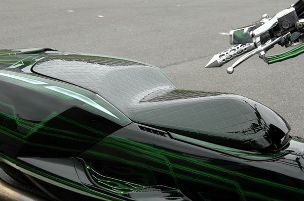 以市售排氣管為基礎,加上綠色塗裝的方式提升一體感