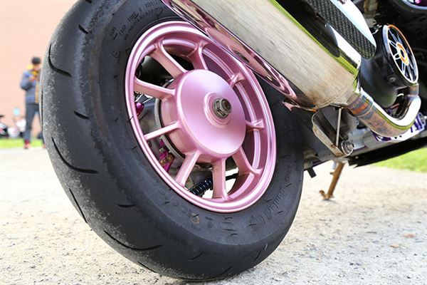 就連前後輪框都選用相近色系,呼應車身主題