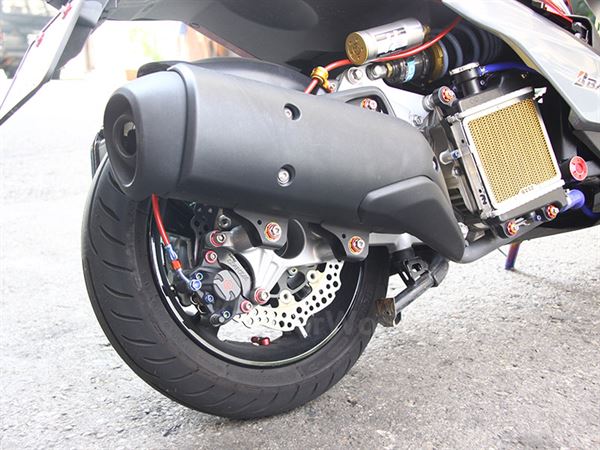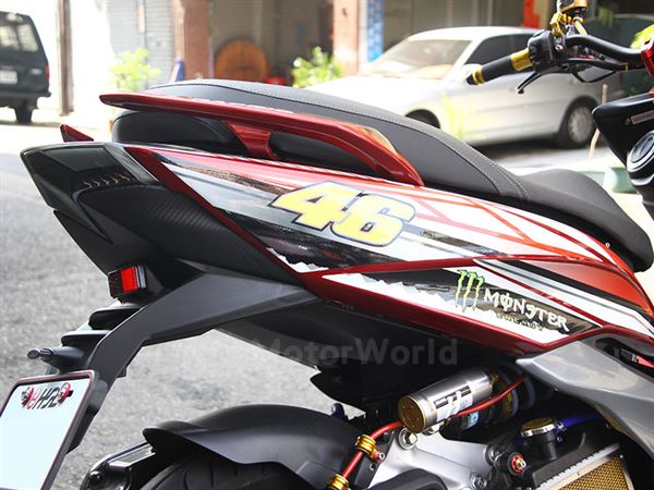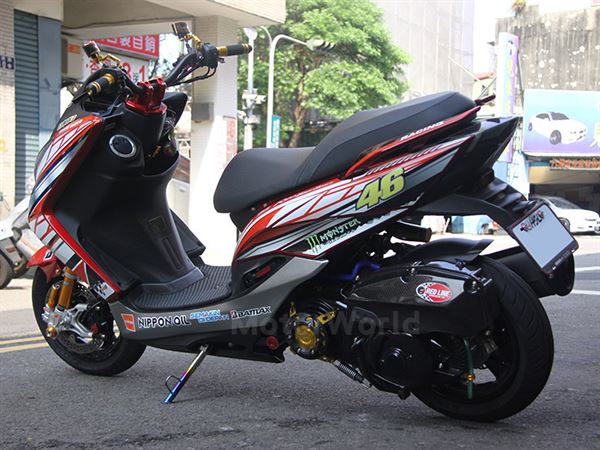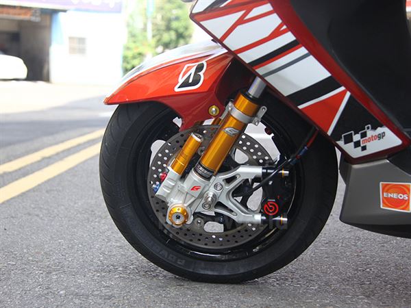 此輛精裝SMAX車上已經看不到「旅」的元素,從頭到尾徹底變身!使用的全是最頂尖的改裝部品!從制動到懸吊,都是最緊繃的配備,搭上YAMAHA廠隊在MotoGP的塗裝彩貼,配合原本紅色的車色,小地方也以碳纖維紋路作配搭,感覺別有一番風味,相信看到此車的人,都不會再覺得他是一輛旅跑,而是徹徹底底的運動車款!![]()
