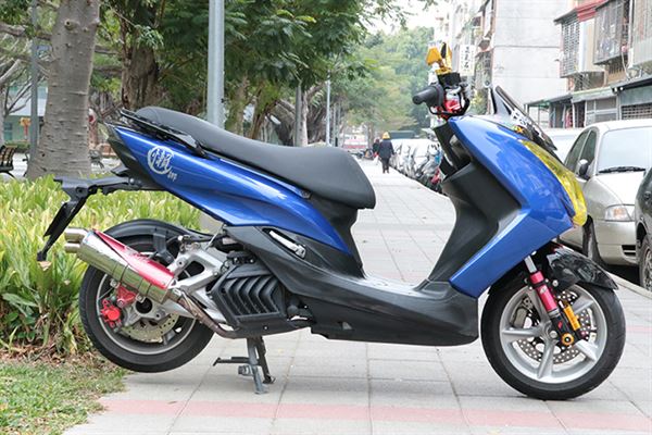GJMS TDC 2000前避震器、D2卡鉗、FAR碟盤、銳澤訂製雙出管、板東BANDO強化皮帶、加大盤面普利盤、唭哩岸輕量離合器組、加長行程開閉盤、高流量空濾、分離式後把手、T3尾牌架