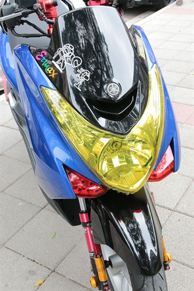 全車亮青色烤漆,加上豔黃車燈包膜,視覺個性鮮明