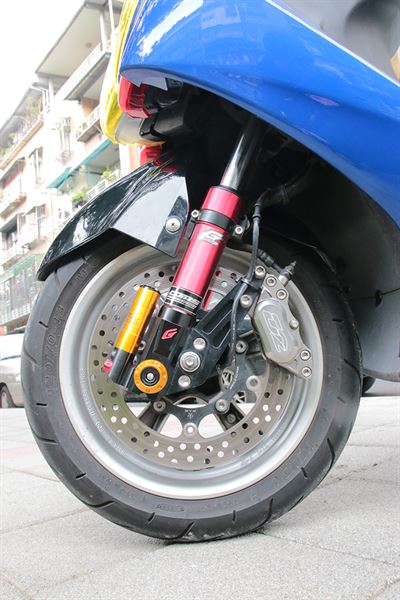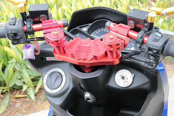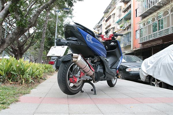 休閒玩法的SMAX不在少數,動力改裝門派的也不少,當然視覺系風格也居高不下,相較於此,在提升動力當下,又同時將外觀做改變的融合風SMAX就少之又少囉!GJMS TDC 2000前避震器有效提升前輪操控,D2煞車卡鉗、FAR碟盤的組合,制動效能足夠抵擋各種緊急時刻,板東BANDO強化皮帶、加大盤面普利盤、唭哩岸輕量離合器組及加長行程開閉盤,全速域傳動系統的強化,使得動力區間帶更寬廣,最終速度表現更優秀!高流量空濾對於引擎動力運轉直接有效,或許也有人發現此車尾牌的獨特之處,沒錯!此為T3移植裝載車牌架,令人難以置信的協調感,讓人為之驚豔!