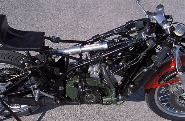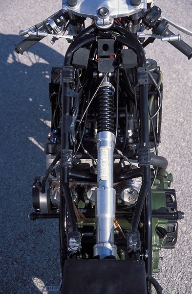 在當時為各廠商所採用的雙搖籃車架,是環抱式車架的前身。