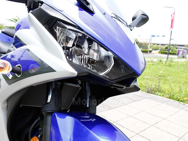 (承襲了YZF的銳利線條,尤其是頭燈更比照了大排氣量車款,且在中央做了個小進氣口造型,車尾及燈系所帶出的戰鬥感也十分到位)